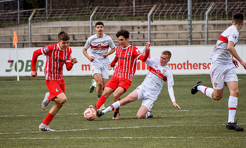 Nachdem die Freiburger U16-Mannschaft in den letzten zwei Spielen gegen Stuttgart und Hoffenheim vier wichtige Punkte sammeln konnte, steht am Samstag das Gastspiel beim FC Esslingen an. Mit viel Energie und Rückenwind möchte das Wiedensohler-Team gegen den derzeit Zwölftplatzierten der EnBW-Oberliga den nächsten Sieg holen. In der Tabelle trennen die beiden Mannschaften nur drei Punkte, wobei der SC Freiburg (10.) bereits ein Spiel mehr bestritten hat. Für beide Teams geht es um den Klassenerhalt. Das Spiel findet im Sportpark Weil in Esslingen am Neckar statt. Anpfiff ist um 16 Uhr.