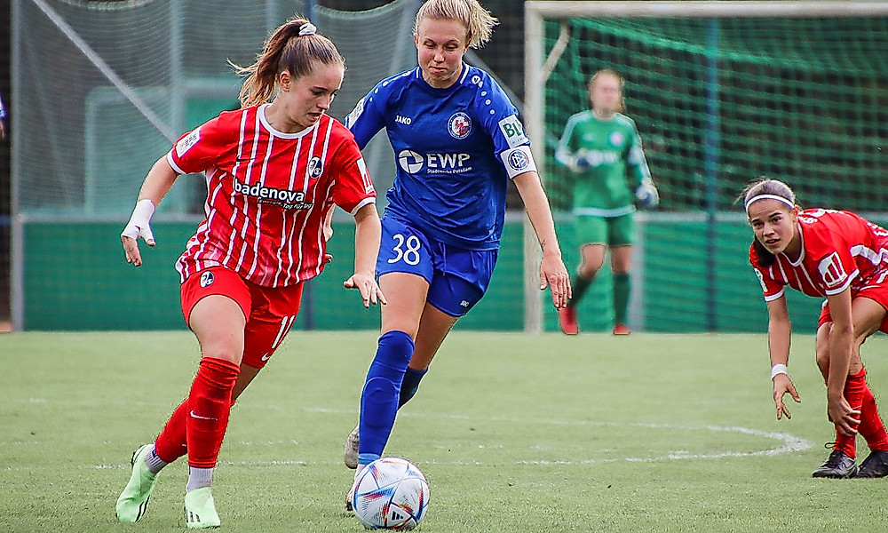 Trotz einer engagierten Leistung konnten die U20-Frauen zuletzt keine Punkte aus Gütersloh entführen. Das Team von Amin Jungkeit und Svenja Broß musste sich denkbar knapp mit 1:2 geschlagen geben. "Wir haben gut gegen ein erfahrenes Zweitliga-Team dagegengehalten und waren nah am Punktgewinn dran", sagt daher auch Jungkeit. Jetzt gilt es, den Fokus auf die anstehenden Aufgaben zu richten. In den kommenden Wochen spielen die U20-Frauen gegen vier Teams aus dem Tabellenkeller - eine große Chance für die junge Truppe, um wichtige Punkte für den Klassenerhalt in der 2. Frauen-Bundesliga einzufahren. "Wir müssen im Spielaufbau noch kreativer werden und im letzten Drittel mehr Chancen erarbeiten", so die Forderung des Freiburger Trainerteams für die nächsten Spiele. Die erste Chance besteht schon an diesem Sonntag: Dann ist die zweite Mannschaft von Turbine Potsdam im Möslestadion zu Gast. "Gegen Potsdam wollen wir wieder unsere Qualitäten auf den Platz bringen, um den ersten Rückrundensieg einzufahren", sagt Svenja Broß. Anstoß der Begegnung ist am 12. März um 11 Uhr. Die Partie gibt's zudem im kostenlosen Livestream auf staige.tv.