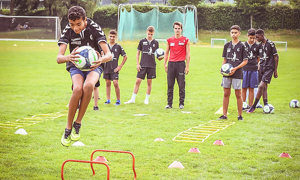 Dort erlebten 80 Jungen in der unmittelbaren Nachbarschaft des SC auf dem Sportgelände des PTSV Jahn Freiburg an zwei Tagen ein buntes Fußball-Lese-Programm. Am ersten Tag absolvierten die Camp-Teilnehmer, nachdem sie offiziell begrüßt wurden, ein Stationstraining, bei dem kleine Leseeinheiten in Fußball- und Koordinationsübungen integriert wurden. Nachdem die Kinder und Jugendlichen sich gegenseitig ihre Projekte vorgestellt hatten, spielten sie in zufällig zusammengestellten Teams die Vorrunde einer Mini-Champions League aus.