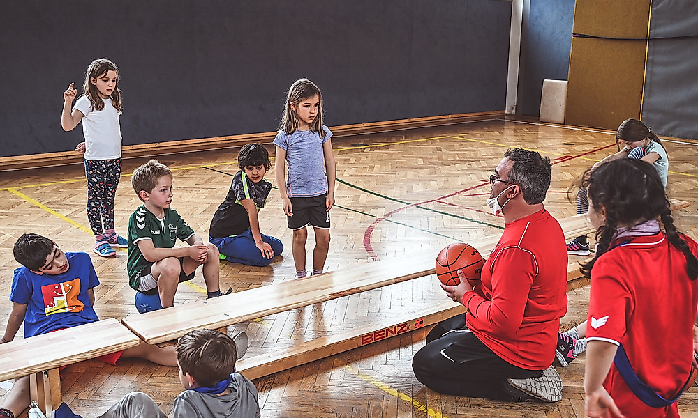 Max Gräßlin packt derweil seine Sachen zusammen, nachher geht es noch zu seinem Halbtagsjob im „Hofgut Himmelreich“, wo er im Service des inklusiven Restaurantbetriebs arbeitet. Die eineinhalb Stunden mit den temperamentvollen Kindern kommentiert er gewohnt eloquent: „Bewegung tut ihnen gut. Man merkt ihnen schon an, dass sie viel am Computer sitzen“, sagt er lächelnd. „Ich glaube, dass die Lehrer/innen auch froh sind, dass sie nach der Ballschule eine ruhigere Klasse haben.“