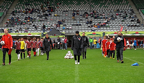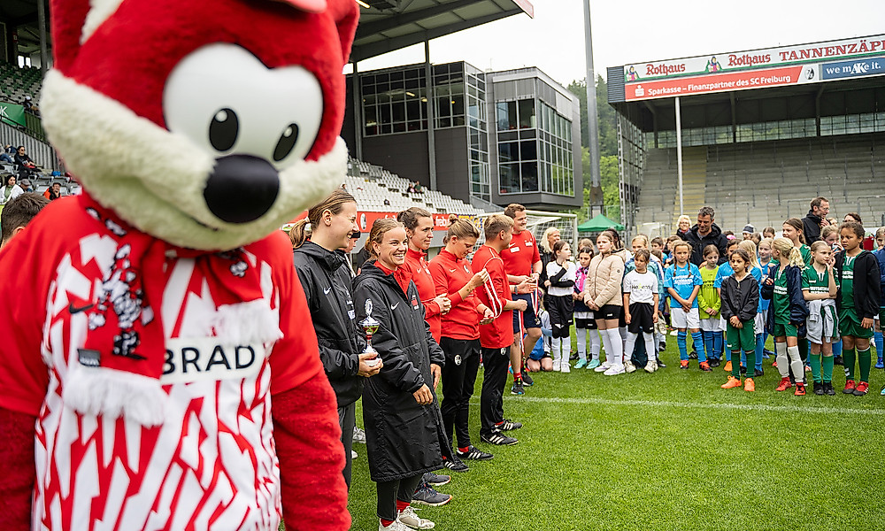 24 Jungen- und 15 Mädchen-Teams waren an den beiden Spielorten Dreisamstadion und PTSV Freiburg Gelände an den Start gegangen. Wie bei den anderen sechs Spieltagen davor liefen auch beim Finale alle gemeinsam ein, was die Augen der Kinder zum Leuchten brachte. Diesmal war das nämlich ein besonderes Highlight, denn sie liefen auf dem Rasen des Dreisamstadions ein, wo der SC Freiburg schon so viele historische Erfolge und Triumphe gefeiert hatte.