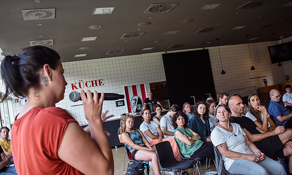 Eingeladen hatten die Supporters Crew Freiburg und die Heinrich Böll Stiftung Baden-Württemberg unterstützt durch den SC Freiburg. Und der Andrang von Fans, Mitgliedern und interessierter Öffentlichkeit war groß.