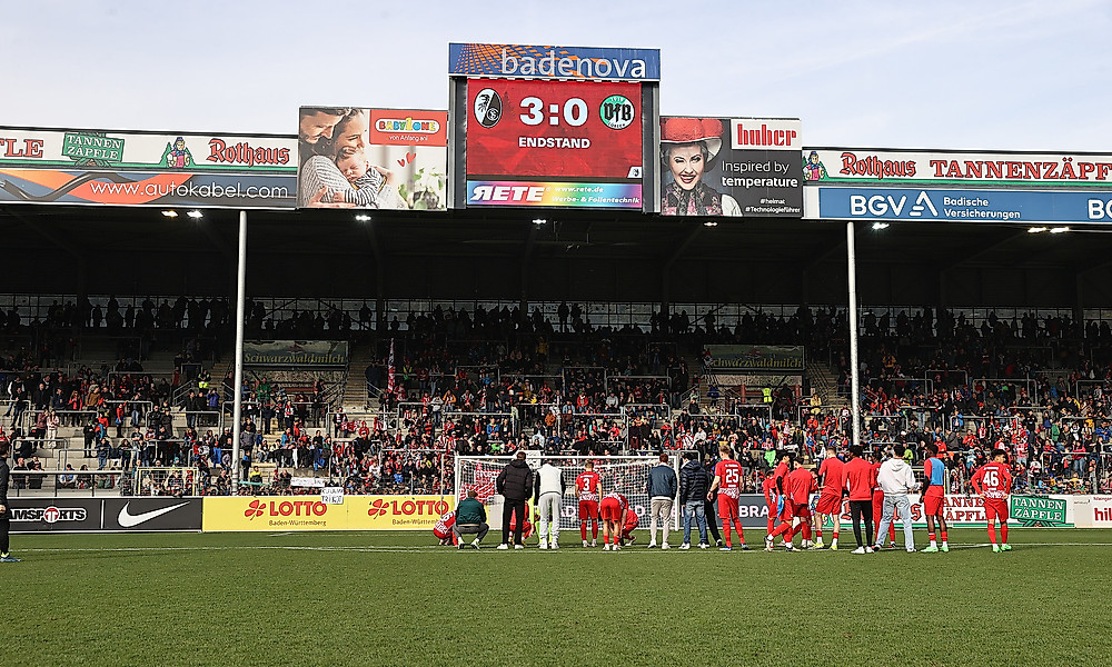 Am Samstag gewann die U23 des Sport-Club Freiburg 3:0 gegen den VfB Lübeck. Die Nordtribüne war dabei fest in der Hand der vom SC anlässlich der Aktion ‚Spende statt Kalender‘ eingeladenen 97 Fußballvereine aus Südbaden.
