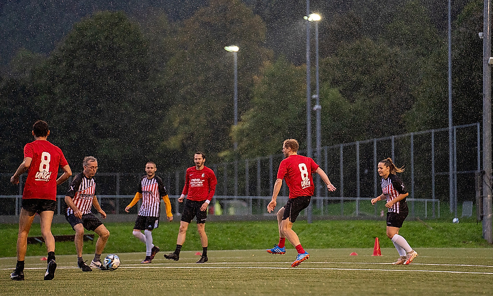Bei teilweise strömendem Regen hat das Team des Rotteck Gymnasiums das diesjährige Förderteam-Turnier vor der Stadt Freiburg gewonnen. Die Pokale überreichte Udo Lay, der Vorsitzende des Fördervereins Freiburger Fußballschule.
