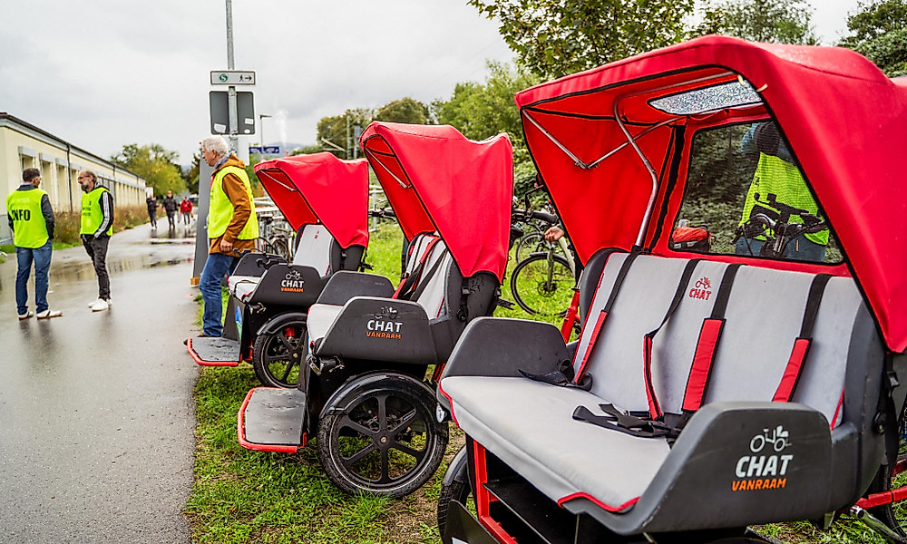 Die drei Rikschas, die von erfahrenen Fahrer/innen des Projekts „Radeln ohne Alter“ der Organisation Bike Bridge gelenkt werden, können je zwei Personen transportieren und sollen künftig von der S-Bahn-Haltestelle „Messe/Universität“ zur Rampe am Eingang E2 pendeln. Am vergangenen Wochenende mussten sie aufgrund technischer Probleme des SC-Mobils noch phasenweise die Strecke von der Straßenbahn zum Stadion und zurück übernehmen.