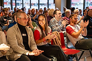 Zahlreiche Vertreter/innen der erfolgreichen Institutionen und Projekte waren in den VIP-Bereich des Europa-Park Stadions gekommen, um an der Verleihung teilzunehmen. Durch den Abend führte SC-Stadion-Moderator Stefan Mayer.
