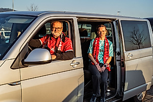 „Hallo Klaus“, ruft Christine Barnikol zurück. SC-Mobil-Mitfahrer und -Chauffeure kennen sich. „Dieser Fahrservice ist großartig“, findet Klaus Goldo. „Er wäre noch toller, wenn es zwei SC-Mobile gäbe“, sagt eine Mitfahrerin: „Vor allem nach dem Spiel ist der Andrang groß.“