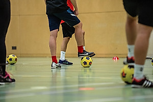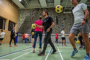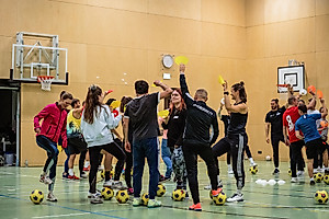 Die zweite Halbzeit stand dann im Zeichen der Praxis: Unter Anleitung des Referententeams nahmen die Teilnehmenden an einer Sporteinheit und einem Mikroballsport-Turnier mit altersgerechten Spielformen teil. Mit viel Dynamik und Spielfreude wurde die Gruppe auf Betriebstemperatur gebracht, bevor auf sechs Feldern Basketball, Fußball und Handball gespielt wurde.