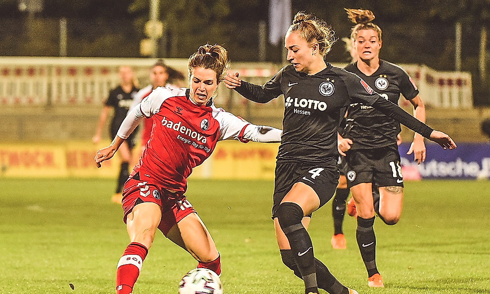 Nach dem spektakulären 6:3-Sieg des Sport-Club gegen Turbine Potsdam kommt es an diesem Wochenende zum nächsten Pokal-Highlight. Denn, wenn sich am Samstag im Frankfurter Stadion am Brentanobad die heimische Eintracht und der Sport-Club gegenüberstehen, geht es um nicht weniger als den Einzug ins DFB-Pokal-Finale, welches am 30. Mai in Köln ausgetragen wird. Für die SC-Frauen wäre es die zweite Endspiel-Teilnahme in der Vereinsgeschichte. Die Breisgauerinnen stehen insgesamt zum achten Mal im Halbfinale um den begehrten DFB-Pokal der Frauen. 2019 gelang erstmals der Einzug ins Finale, in dem sich der Sport-Club nach einer leidenschaftlichen und starken Vorstellung dem VfL Wolfsburg denkbar knapp mit 0:1 geschlagen geben musste.