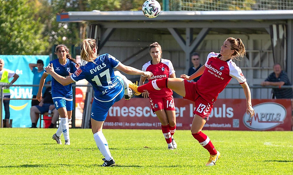 Es dauerte bis zur elften Minuten, bis sich der Sport-Club durch Samantha Steuerwald belohnte und den umjubelten 1:0-Führungstreffer für das Kraus-Team erzielte. Nur drei Minuten später gelang dann auch Sandra Starke ihr erster Saisontreffer und sie stellte auf 2:0 aus Freiburger Sicht.