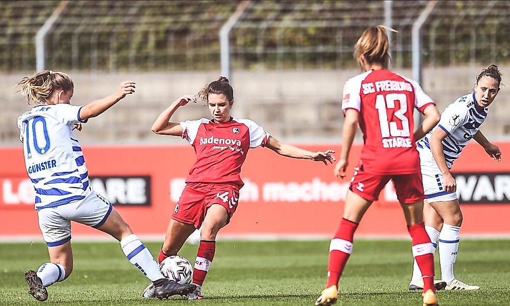 Bei bestem Fußballwetter startete der Sport-Club hochmotiviert in die zweite Heimpartie der Saison. Nach zwei gespielten Minuten ereilte das Freiburger Team eine Schrecksekunde: Lina Bürger ging nach einem Zweikampf mit ihrer Duisburger Gegenspielerin verletzt zu Boden. Nach kurzer Behandlungspause ging es jedoch für Bürger weiter.