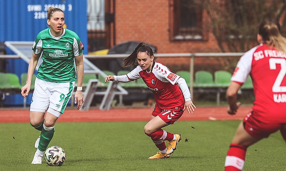 Freiburgs Cheftrainer Daniel Kraus schickte seine Startelf mit vier personellen Veränderungen auf das Feld. Hasret Kayikci, die sich in der Partie gegen Duisburg ihre fünfte Gelbe Karte abholte, musste zwangsweise pausieren. Für sie rückte Marie Müller in die Startformation. Ferner liefen in Bremen auch Luisa Wensing, Stefanie Sanders und Rebecca Knaak von Beginn an auf. Jana Vojteková und Tyara Buser nahmen vorerst auf der Ersatzbank platz und Greta Stegemann wurde aufgrund einer kleineren Verletzung, die sie sich im Spiel in Duisburg zugezogen hatte, geschont und war demzufolge nicht im Kader.