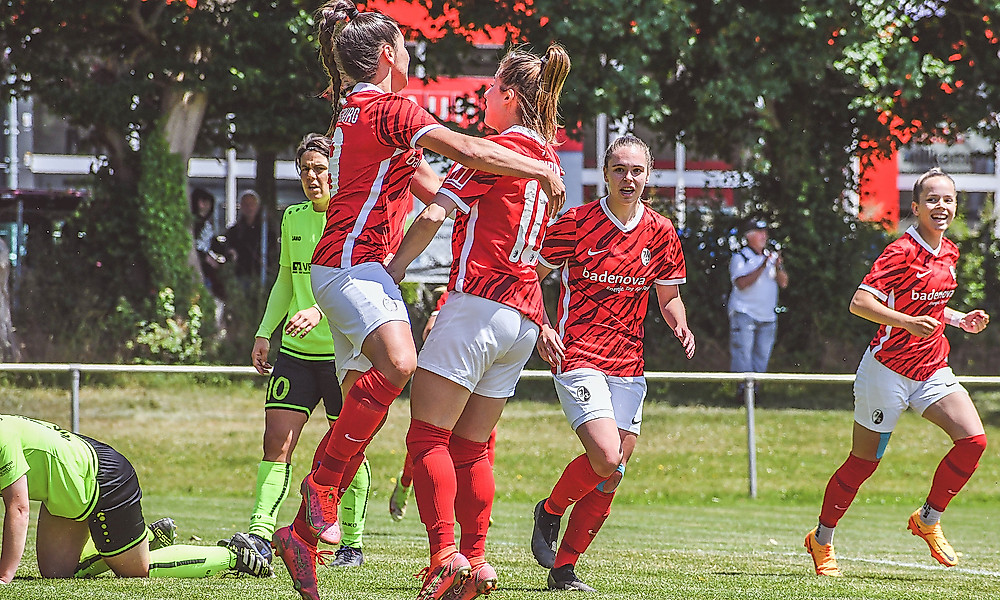 Der zweite Durchgang zeigte sich etwas zerfahrener - beiden Mannschaften fehlte am Ende die letzte Konsequenz. Nach zehn Minuten in der zweiten Hälfte setzte Anne Rotzinger zu einem schönen Schlenzer an, der den Kasten aber knapp verfehlte (55.). Rotzinger war es auch in der 80. Spielminute, die erneut für Torgefahr auf Freiburger Seite sorgte: Ihr Schuss in Richtung flaches, rechtes Eck wurde jedoch pariert. Den Lucky Punch hatte schließlich Melina Reuter auf dem Fuß, die in der 90. Minute von der halbrechten Seite das Spielgerät an die Querlatte setzte. Am Ende zeigte sich Trainer Amin Jungkeit zufrieden, auch wenn mit etwas Spielglück mehr ein Sieg möglich gewesen wäre: "Wir sind die jüngste Mannschaft der Liga, müssen aber aus der ein oder anderen Möglichkeit ein Tor machen. Das werden wir thematisieren und dann bin ich sehr positiv gestimmt, dass wir nach Weinberg fahren und in die zweite Liga aufsteigen." Das Relegationsrückspiel findet am kommenden Samstag, 04. Juni, um 15 Uhr beim SV 67 Weinberg statt (Sportanlage Weinberg).