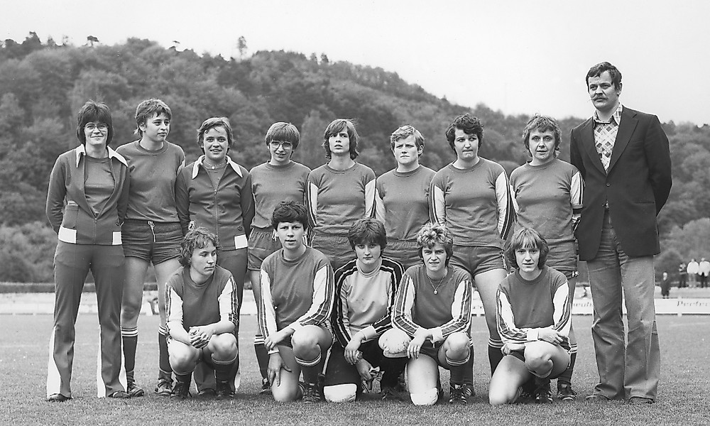 Das Foto oben kenne ich natürlich. Eine Vergrößerung davon hängt im Schönbergstadion auch in unserem Büro an der Wand. Das Bild zeigt das erste Frauenteam des SC Freiburg, in der Saison 1975/76, dessen Torhüterin ich war. Am 1. Juli 1975 wurde beim Sport-Club erstmals eine Frauenfußball-Abteilung gegründet. Damals wechselte die komplette Mannschaft der SpVgg Wiehre 04 zum SC. Obwohl sie im Endspiel um die Südbadische Meisterschaft standen, dort aber nicht mehr antraten. Die Spielerinnen versprachen sich wohl mehr Unterstützung und bessere Bedingungen bei einem Verein, der in der 1. Amateurliga Südbaden spielte. Aber genau weiß ich das nicht.