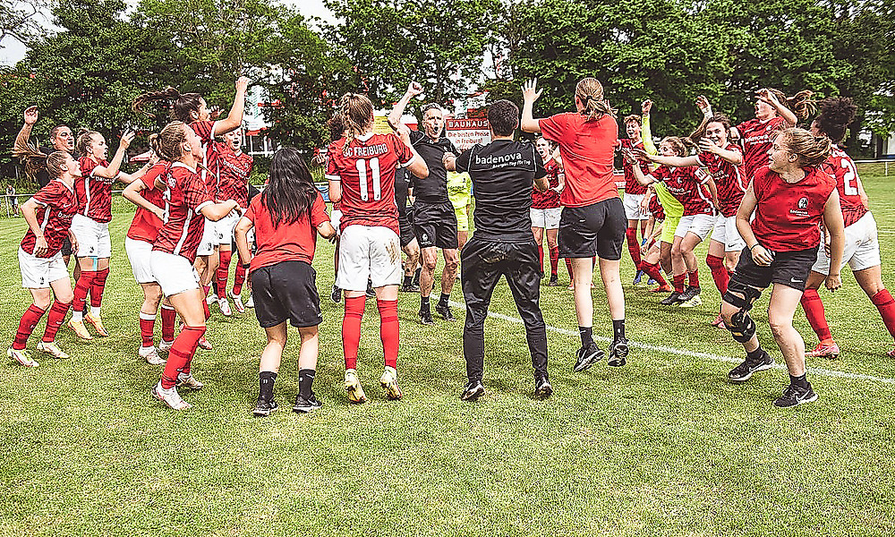 „Ich bin wahnsinnig stolz auf die Mädels – und auch ein bisschen sprachlos“, sagte der Freiburger Cheftrainer Amin Jungkeit kurz nach Abpfiff. Die Minuten nach Ende des letzten Spieltags der aktuellen Saison standen ganz im Zeichen der Emotionen: Die Freiburger U20 besiegte nicht nur den direkten Konkurrenten TSV Jahn Calden mit einem deutlichen 5:2-Heimsieg, sondern konnte sich dadurch auch die Meisterschaft der Regionalliga Süd in der ersten Staffelgruppe sichern. Eben diese Meisterschaft ist auch gleichbedeutend mit der Relegation zur Zweiten Frauen-Bundesliga.
