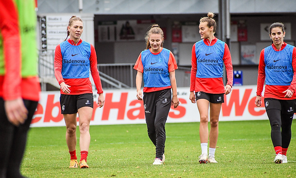 Die Stimmung war sichtlich gelöst, als Cheftrainerin Theresa Merk ihr Team am Freitag zum ersten Mal im neuen Jahr wieder auf den Rasen bat. Bei nicht ganz typischen Freiburger Wetterbedingungen – wolkenbedeckter Himmel, Wind und knappen 10 Grad Außentemperatur – startete die Mannschaft mit den ersten, lockeren Einheiten.
