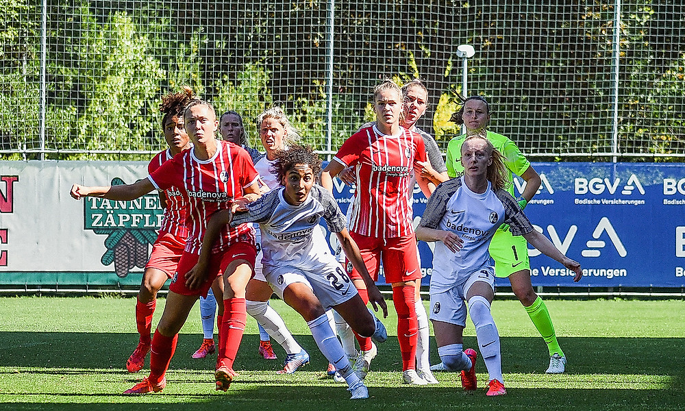 Das Testspiel zwischen den Bundesliga-Frauen des Sport-Club und den U20-Frauen endete 2:2 (0:1, 1:1). Die Tore für die erste Mannschaft schossen Marie Müller und Mia Büchele, für die U20 trafen Sury Pallotta und Nora Scherer.