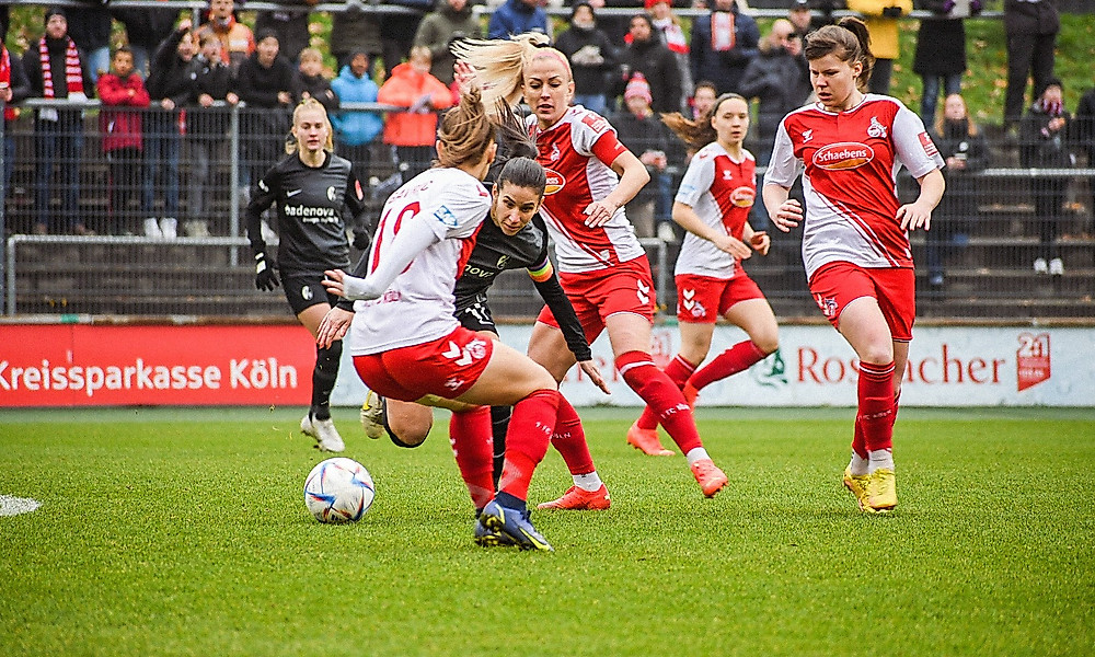 Besonders spektakulär stellte sich die Begegnung im Franz-Kremer-Stadion zwischen den Kölnerinnen und dem Sport-Club nicht dar, viele Aktionen spielten sich im Mittelfeld ab. Der SC war zwar über die Partie hinweg die spielbestimmende Mannschaft, konnte sich aber nur selten wirklich gefährlich vors Tor des 1. FC spielen. Eine Angriffswelle nach der anderen startete das Freiburger Team, scheiterte aber meistens an sich selbst: Die Bälle ins letzte Drittel oder in die Angriffsspitze waren zu ungenau. Im ersten Durchgang konnten lediglich Chiara Bouziane und Giovanna Hoffmann in einer Doppelchance mit Hasret Kayikci zu gefährlichen Abschlüssen kommen,