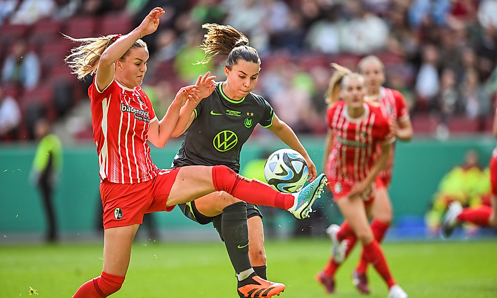 Im DFB-Pokalfinale müssen sich SC-Frauen dem VfL Wolfsburg vor Rekordkulisse mit 1:4 (1:1) geschlagen geben. Das Freiburger Tor des Tages erzielte Janina Minge per Kopf nach einer Ecke von Hasret Kayikci zum zwischenzeitlichen Ausgleich (42.).