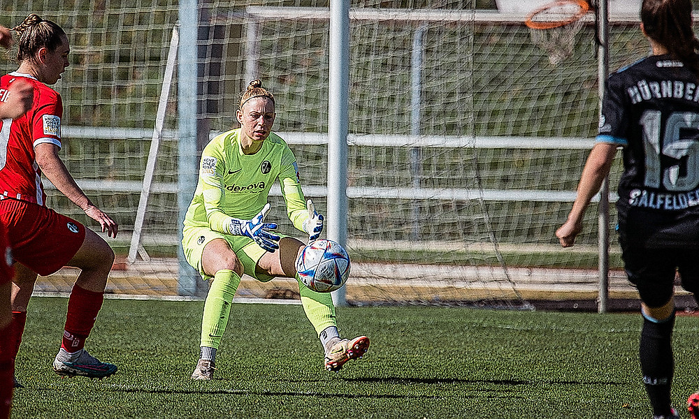 Zwei Siege in Folge konnte das U20-Team von Amin Jungkeit und Svenja Broß einfahren: Nach dem 3:1 gegen Potsdam und dem 4:0 in Jena mussten die Freiburgerinnen zu Hause gegen den 1. FC Nürnberg allerdings wieder einen kleinen Rückschlag beim Kampf um den Klassenerhalt hinnehmen. "Nürnberg hat es gut gemacht: Sie waren wie erwartet taktisch sehr variabel, wir konnten aber dennoch gut dagegenhalten", sagte Amin Jungkeit nach dem Spiel. Auf beiden Seiten gab es im ersten Durchgang nur wenige Torchancen, Nürnberg konnte ingesamt aber mehr Ballbesitz verzeichnen. Der Sport-Club ließ nur wenig zu, verteidigte diszipliniert - bis kurz vor der Pause: Nach einem Eckball brachte Rebekka Salfelder den Club in der 42. Minute in Führung. In der zweiten Hälfte war der SC selbst dann etwas besser im Spiel. "Wir hatten drei sehr gute Torchancen, die wir nicht genutzt haben", so Jungkeit. Nürnberg zeigte sich dann aus Freiburger Sicht leider maximal effizient: Mit der einzigen Großchance netzten die Gäste durch Emma Kusch zum 0:2 ein. "Wir haben bewiesen, dass unser junges Team spielerisch gut mit einem sehr körperlich auftretenden Aufstiegsaspiranten mithalten kann", zog Svenja Broß nach Spielende das Fazit. "Im letzten Drittel hat uns die finale Durchschlagskraft und das Glück gefehlt. Wir müssen noch mehr Torchancen kreieren und die dann besser nutzen." Eine schöne Nachricht gab es am Sonntag aber doch noch: Rafaela Borggräfe gab nach drei Monaten Krankheitspause ihr Comeback im Freiburger Tor. Weil im Parallelspiel Ingolstadt den SC Sand besiegte, sind es derzeit nur noch vier Punkte auf den ersten Abstiegsplatz. Am nächsten Sonntag kommt es dann zum brisanten Kellerduell: Die U20-Frauen sind am 02. April um 11 Uhr beim FC Ingolstadt zu Gast.