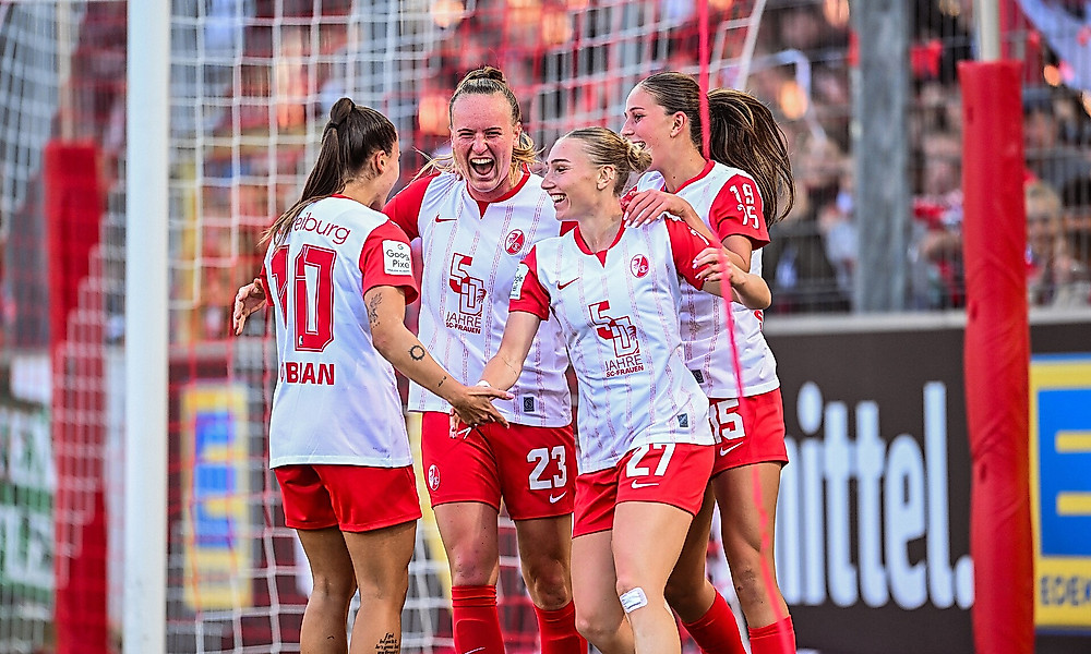 Der sechste Spieltag der laufenden Bundesligasaison war kein Spieltag wie jeder andere im Dreisamstadion. Im Jahr 1975 und damit vor genau 50 Jahren, hatte sich beim SC Freiburg erstmals eine Frauenfußballabteilung gegründet. Beim dritten Heimspiel dieser Spielzeit gegen Eintracht Frankfurt wurde dieses Jubiläum gebührend gefeiert. Zunächst vor dem Spiel mit einem großen Fan- und Familienfest – und erst Recht hinterher, als die 8.698 Zuschauerinnen und Zuschauer im Dreisamstadion mit der Mannschaft nach einer spektakulären Partie auch einen Heimsieg bejubeln konnten.