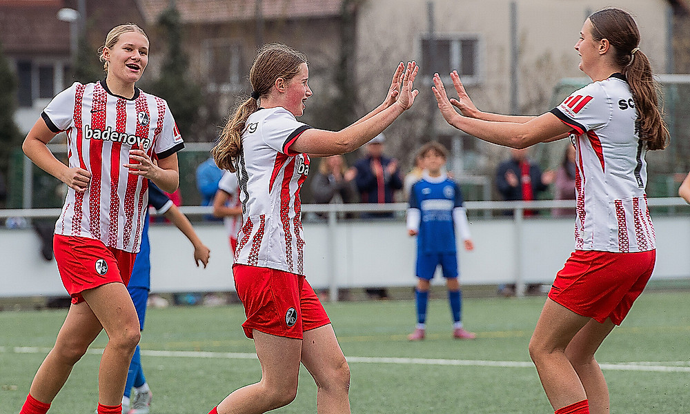 All zu lange zeigten sich die Freiburgerinnen davon aber nicht beeindruckt und erspielten sich immer wieder Halbchancen, aber noch keine klaren Abschlüsse. "Wir haben nur noch wenig zugelassen und in der zweiten Halbzeit dann auch noch mehr Druck ausgeübt", sagt der Freiburger Coach. Nach einem Standard brachte Leni Hauger den SC zurück ins Spiel (40.), wenig später erzielte Paula Meßmer durch ein schön herausgespieltes Tor das verdiente 2:2 (43.). Im weiteren Verlauf verpasste die U17 sogar noch die eigene Führung - zu unsauber zeigte sich die Müller-Elf im letzten Drittel. Am Samstag empfängt man um 11 Uhr den SV Sinzheim im Schönbergstadion.