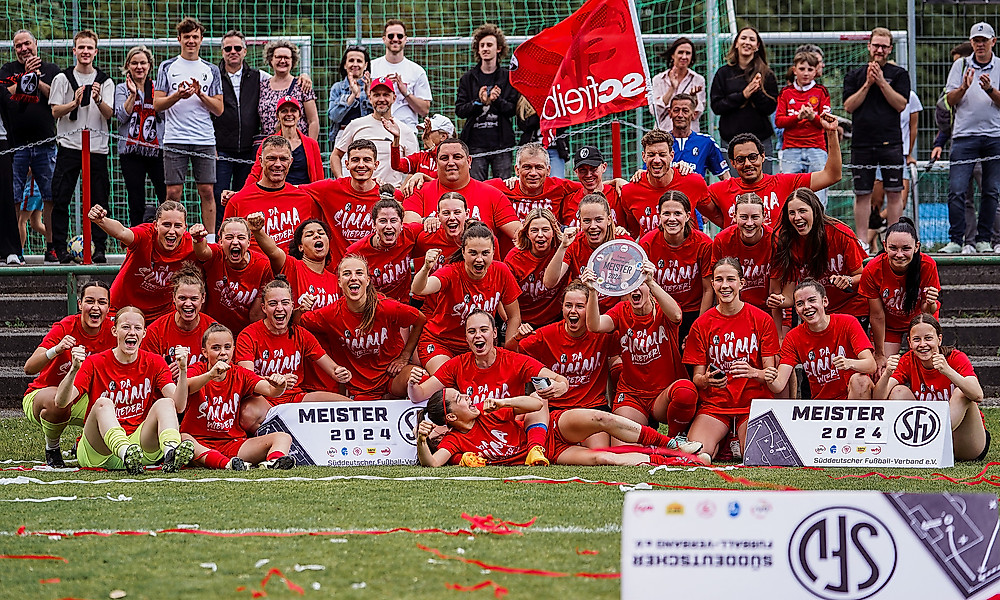 Dementsprechend brachten die U20-Frauen die 3:0-Führung souverän über die Zeit. Damit sicherte sich das Team von Amin Jungkeit den ersten Platz – und den Meistertitel in der Regionalliga Süd. Verbunden mit dem ersten Tabellenrang ist der direkte Aufstieg in die 2. Frauen-Bundesliga. Nach nur einem Jahr Abstinenz kehren die Freiburgerinnen damit in die zweithöchste Spielklasse Deutschlands zurück: „Wir wussten, dass wir bis zum letzten Spieltag alles geben müssen. Das haben wir getan und stehen jetzt zurecht auf dem ersten Platz. Das Team spielt einen attraktiven Fußball und hat sich den Titel die gesamte Saison über verdient“, so der stolze SC-Trainer. „Wir sind überglücklich, wieder zurück in der zweiten Liga zu sein. Das ist eine der besten Möglichkeiten, um den nächsten Schritt Richtung erste Mannschaft zu gehen.“