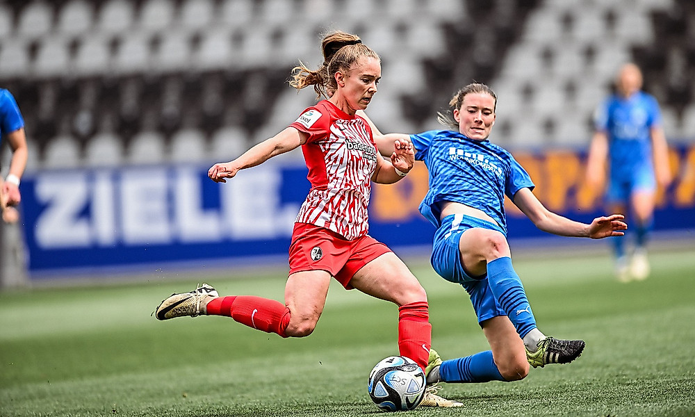 Die SC-Frauen warfen daraufhin nochmal alles nach vorne, konnten aber zwei weitere gute Chancen nicht in Tore ummünzen: Eine Flanke von Eileen Campbell rutschte bis zu Vobian am halbrechten Strafraumeck durch, der das Kunstleder aber bei der Annahme leicht versprang (75.). In der Nachspielzeit schlug die eingewechselte Greta Stegemann in ihrem 100. SC-Pflichtspiel nochmal eine weite Flanke in den Essener Strafraum und fand Campbell, deren Kopfball aber von Winkler erneut stark pariert wurde (90.+3).
