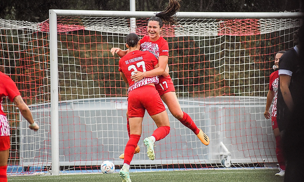 Vor einer gut besuchten Kulisse im Rheinfeldener Europastadion starteten die SC-Frauen mit einer engagierten Leistung in das erste Testspiel der Sommervorbereitung. Noch keine zwei Minuten waren gespielt, da stand es auch schon 1:0 für die Freiburgerinnen. Nach einem kurz ausgespielten Eckball bediente Marie Müller Mitspielerin Samantha Steuerwald im Strafraum, die zur frühen Führung einnicken konnte. Und der Sport-Club zeigte sich auch in den Folgeminuten höchst motiviert: Nach Vorarbeit von Selina Vobian erhöhte Marie Müller nur kurze Zeit später auf 2:0.