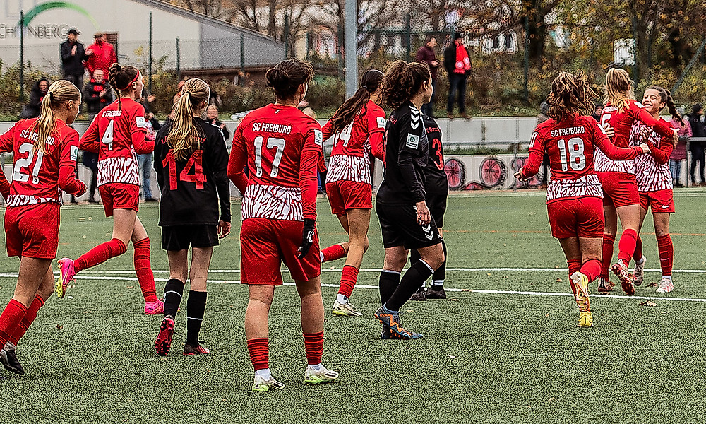 Im letzten Spiel der Hinrunde fahren die U17-Juniorinnen nochmal ein Erfolgserlebnis ein. Nach zuletzt mehreren Niederlagen holt das Team von Pia Züfle einen wichtigen Dreier in der B-Juniorinnen-Bundesliga Süd. Im Heimspiel gegen den 1. FC Donzdorf siegte die Züfle-Elf am Ende verdient mit 3:1 und rangiert damit weiter auf dem sechsten Platz im gesicherten Mittelfeld. Antonia Hauser brachte ihre Freiburgerinnen bereits nach vier gespielten Minuten in Führung - und wenig später legte der Sport-Club auch gleich nochmal doppelt nach: Erst traf Sina Heitz zum 2:0 (19.), ehe Luisa Jansen drei Minuten später auf 3:0 erhöhte (22.). Den Schlussakkord setzte Charlyne Szenk für den 1. FC Donzdorf, als sie in der 52. Minute zum 3:1-Anschluss traf. Der Treffer gefährdete einen insgesamt verdienten Heimsieg jedoch nicht mehr. "Wir haben ein gutes Spiel gemacht, bei dem wir vor allem in der ersten Halbzeit unsere Chancen genutzt haben. In der zweiten Hälfte hätten wir nochmal nachlegen müssen", sagte Züfle nach der Partie. Vor der Winterpause treten die U17-Juniorinnen noch gegen den FC Bayern und bei Eintracht Frankfurt an.