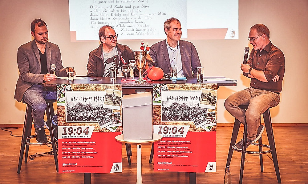 Den Fragen, wie es entstand und wann es gesunden wurde, so der SC-Fanbeauftagte André Wunder bei der Begrünung, und was für ein Verein der SC Freiburg in den 1920-Jahren war, sollte anschließend mit Uwe Schellinger und den Gästen Peter Hilfinger, Chorleiter des MGV Kolping Tunsel, sowie Dr. Dr. Michael Fischer vom Zentrum für Populäre Kultur und Musik der Universität Freiburg nachgespürt werden.