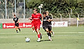 Auf der Gegenseite waren die Breisgauer nach etwa einer halben Stunde zum ersten Mal richtig nah dran am Führungstreffer. Nach einem schönen Angiff über die linke Seite und einer präzisen Hereingabe von Kimberly Ezekwem jagte Kevin Schade den Ball vom kurzen Pfosten an die Unterkante der Latte, von wo er zurück ins Feld prallte. Kurz bevor Schiedsrichter Florian Ziegler jedoch zur Pause in Richtung Kabinen zeigen konnte, musste er auf den Punkt im Ulmer Strafraum zeigen. Nach schönen Spielaufbau von Atubolu auf Noah Weißhaupt, leitete dieser den Ball weiter zum startenden Schade, der kurz hinter der Strafraumgrenze gefoult wurde. Falko Michel nahm sich den Ball und traf in der 45. Minute zum 1:0-Pausenstand aus Freiburger Sicht.