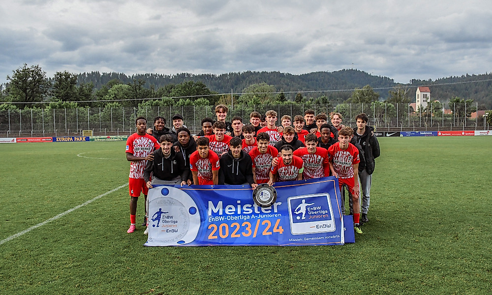 Nach dem Seitenwechsel nutzten die Freiburger gleich ihre erste Großchance, um zu erhöhen. David Amegnaglo traf auf Hereingabe von Louis Tober zum 100. Liga-Tor für die SC-U19 in dieser Saison. Kurz vor Beginn der Schlussphase stellte Luca Schulten mithilfe eines schnellen Gegenstoßes auf 4:0 (68.). In der Endphase passierte nicht mehr allzu viel, die Heimmannschaft spielte die letzten Minuten souverän herunter und ließ bis Schlusspfiff keinen Gegentreffer mehr zu. Der neue Oberliga-Meister beendete die Saison somit mit 25 Siegen und gerade mal einem Unentschieden bei einem Torverhältnis von 101:14. „Es ist außergewöhnlich, kein Spiel zu verlieren und nur zwei Punkte liegen zu lassen. Kompliment an die Jungs – sie haben es wirklich gut gemacht“, sagte Bernhard Weis.