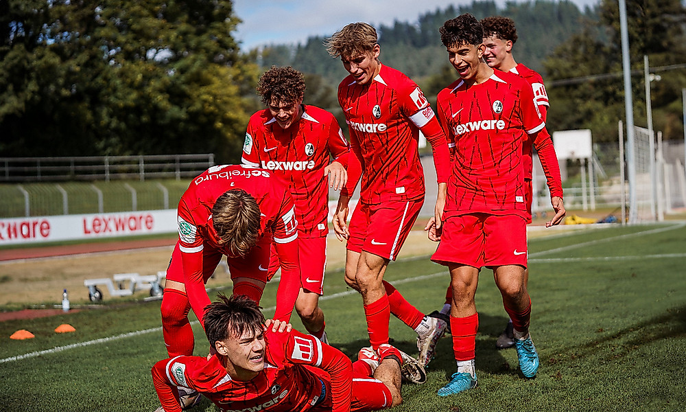Mit dem 3:0-Erfolg gegen Bayer Leverkusen zieht die U19-Mannschaft des SC Freiburg ins Viertelfinale des DFB-Pokals der Junioren ein. Nach einer torlosen ersten Halbzeit erzielen Mika Reifsteck (58.), Luca Schulten (71.) und Elijah Oguguo (72.) die Treffer für den Sport-Club, SC-Keeper Kilian Katz parierte den Leverkusener Elfmeter (84.) und hielt bis zum Schluss den Freiburger Kasten sauber. Den ausführlichen Spielbericht gibt es hier. Die Auslosung der Pokal-Viertelfinalspiele findet am Mittwoch, den 16. Oktober statt, die Spiele sind Anfang November angesetzt.