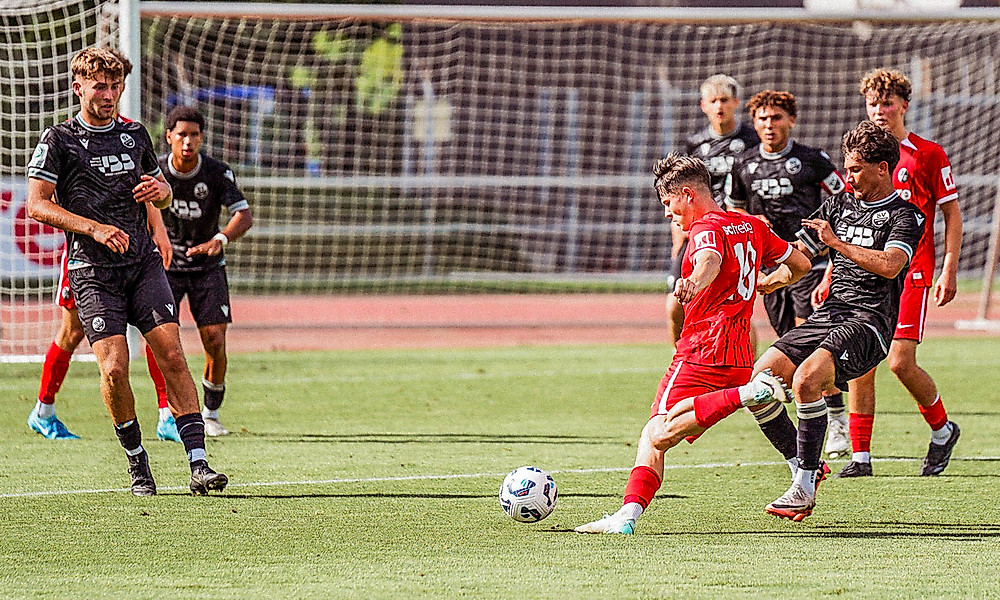 In der ersten Hälfte, analysierte Weis, habe es seiner Mannschaft auch etwas an Kompaktheit gefehlt: „Das haben wir nach der Pause angepasst, das Feld enger gemacht und besser die Tiefe gesucht.“ Ein schöner Beweis dafür, dass die Korrekturen schnell griffen, war der zweite Treffer nur fünf Minuten nach dem Wiederanpfiff. Nach einem Antritt von Rouven Tarnutzer und dessen präzisem Steilpass erhöhte Luca Schulten (50.) für die U19.