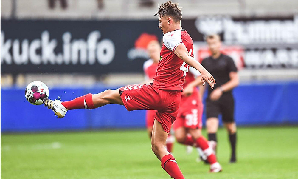 Nach einer achtwöchigen Vorbereitung fanden die Gäste nach einer kurzen Abtastphase gut ins Spiel. Kevin Schade hätte schon in der Anfangsphase die Führung erzielen können, scheiterte frei vor dem Tor beim Abschluss aber an FCA-Keeper Nicolas Kristof (12.). Fünf Minuten später verfehlte Marvin Pieringer nach einem Freistoß aus dem Halbfeld ähnlich knapp per Kopf.