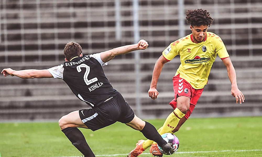 Der SC Freiburg II hat sich am 20. Spieltag der Regionalliga Südwest 1:1 (1:1) von der SV 07 Elversberg getrennt. Luca Schnellbacher (19.) brachte die Gäste in einer intensiven Begegnung in Führung, Kiliann Sildillia (37.) glich noch vor der Pause aus. Bei den Saarländern sah Eros Dacaj (81.) in der Schlussphase noch die Rote Karte.