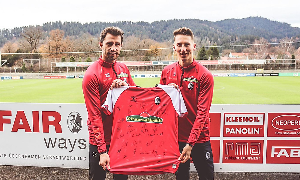 Der Sport-Club hält zusammen: Die U23 unterstützt die an Dickdarmkrebs erkrankte Mutter von U20-Spielerin Sabrina Kraus, mit der Versteigerung eines match-worn und von der Mannschaft unterschriebenen Trikots sowie einer Spende an die Familie.