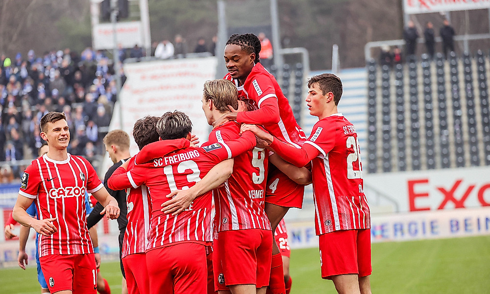 Dort stockte die U23 ihre bislang beeindruckende Bilanz mit einem weiteren Auswärtssieg zur Saison-Halbzeit auf jetzt 35 Punkte auf. „Der Sieg war in der Summe mehr als verdient. Wir haben in der ersten Halbzeit und kurz nach der Pause das dritte Tor verpasst“, sagte Thomas Stamm. „Ich hatte ein Spiel auf Messers Schneide erwartet, deshalb großes Lob an die Mannschaft, wie sie die ersten 50, 60 Minuten gestalten konnte. Es war klar, dass es nach dem Anschlusstor noch einmal wilder wird. Aber wir haben eine gute Mischung gefunden und es auch hinten raus souverän gemacht“, so der SC-Trainer.