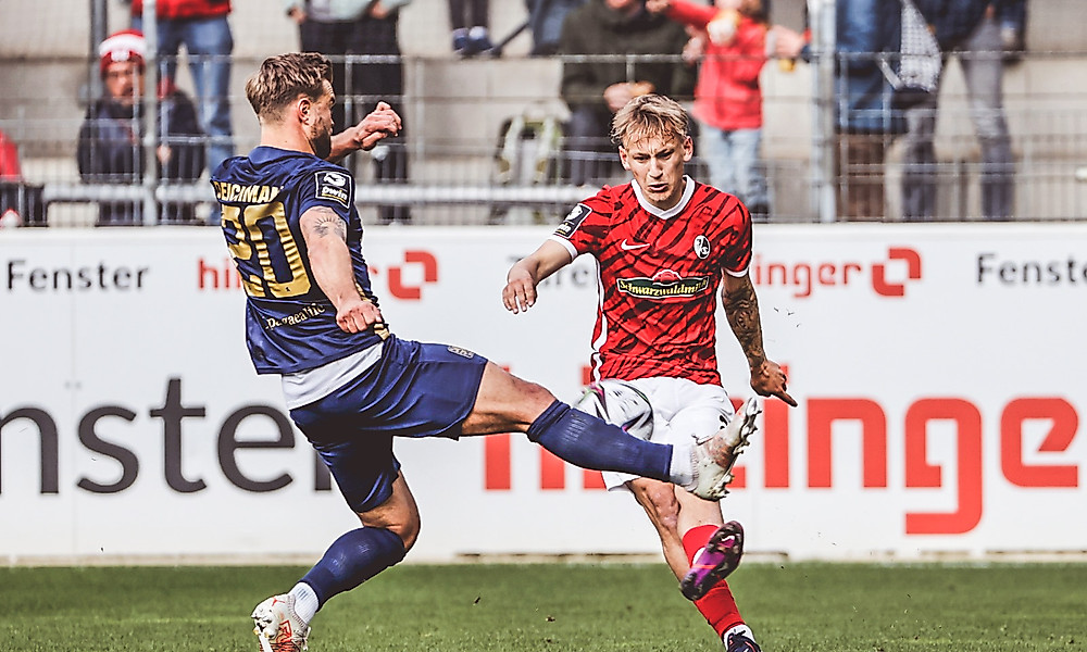 Aber auch mit zwei Spielern mehr auf dem Feld vermochten die Gäste nur selten für Gefahr zu sorgen. Einen Schuss von Lex klärte Ezekwem vor der Linie (63.). Einen Freistoß von Neudecker parierte Atubolu. Auf der Gegenseite sorgte der eingewechselte Raphael Assibey-Mensah in der Schlussphase sogar wiederholt noch für Freiburger Gefahrenmomente – bis ans Ende der sechsminütigen Nachspielzeit, welche die Gäste ebenfalls nicht mehr zu einem dritten Treffer nutzen konnten.