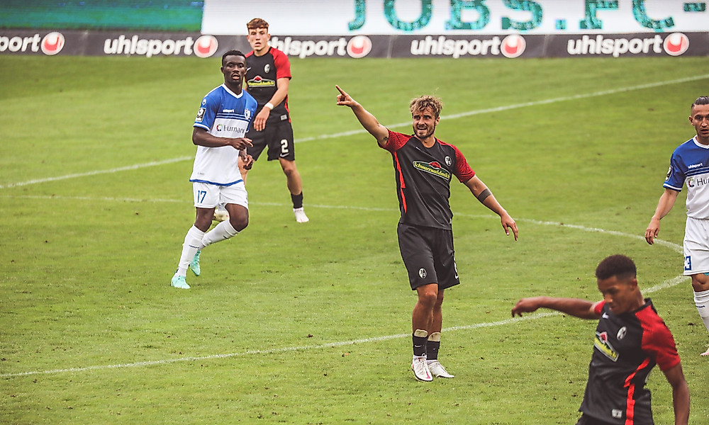 Der Sport-Club kam nach dem Wiederanpfiff zunächst mutiger aus den Kabinen. „Wir waren griffiger nach dem Wechsel“, meinte auch SC-Trainer Thomas Stamm nach der Partie. Ein erstes Zeichen setzte Yannik Engelhardt in der 50. Minute, dessen Schuss jedoch deutlich über das Tor segelte. In der 72. Minute war es dann Lars Kehl, dessen Versuch aus halbrechter Position nur kanpp am langen Pfosten vorbeiflog. Aber auch die Magdeburger kamen zu ihren Gelegenheiten. Nach einer überraschenden Freistoßvariante, die in einem wundervoll geschlenzten Schuss von Andreas Müller mündete, kratzte Sauter den Ball mit einer ebenso wundervollen Parade aus dem Kreuzeck (60.). Machtlos wäre der junge Freiburger Keeper wohl in der 76. Minute geblieben, aber Abwehrchef Sandrino Braun-Schumacher sprang in die Bresche und rettete nach Kopfball von Conteh auf der Linie.