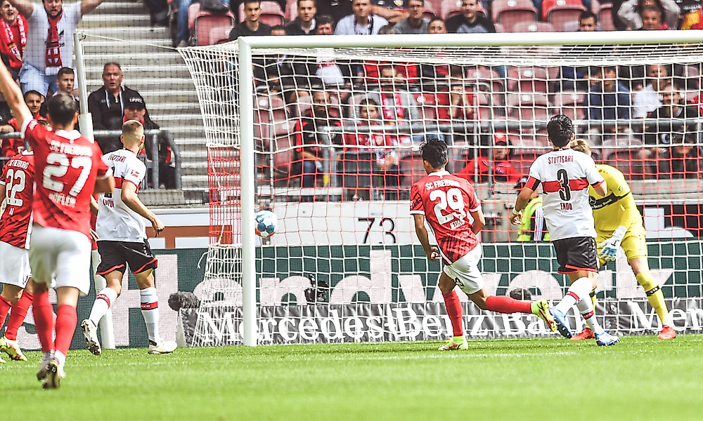 Die Schwaben, die nach wie vor dem knappen Rückstand hinterherliefen, schoben nach und nach immer höher und öffneten den Breisgauern Räume, die diese immer wieder nutzten um das Kunstleder nach Ballgewinnen schnell nach vorne zu treiben. Roland Sallai (73.) und Maxi Eggestein (75.) ließen eine gute Viertelstunde vor Schluss aussichtsreiche Chancen liegen.