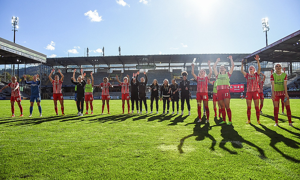 Seit unserem Umzug der Frauenabteilung bin ich also auch wieder in meinem Dreisamstadion – dort, wo vor ein paar Jahren noch alles begann. Und ich genieße jedes Heimspiel dort: Zwar nicht wie früher vor ausverkaufter Kulisse, dafür sind Highlightspiele wie das Pokalachtelfinale gegen Wolfsburg oder zuletzt der 4:1-Heimsieg gegen Duisburg absolut einzigartige Erlebnisse. Bisschen Gänsehaut bekomme ich beim Schreiben immer noch, wenn ich an die Atmosphäre zurückdenke.