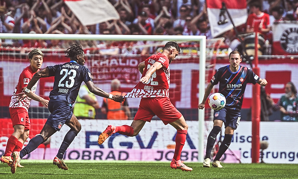 Das letzte Heimspiel der Saison endet mit einem 1:1 (1:1)-Unentschieden gegen den 1. FC Heidenheim. Ritsu Doan traf zur Freiburger Führung (29.), Kevin Sessa erzielte den Ausgleich für die Gäste (38.). Große Emotionalität gab es nach dem Spiel, als Christian Streich und Patrick Baier gefeiert wurden.