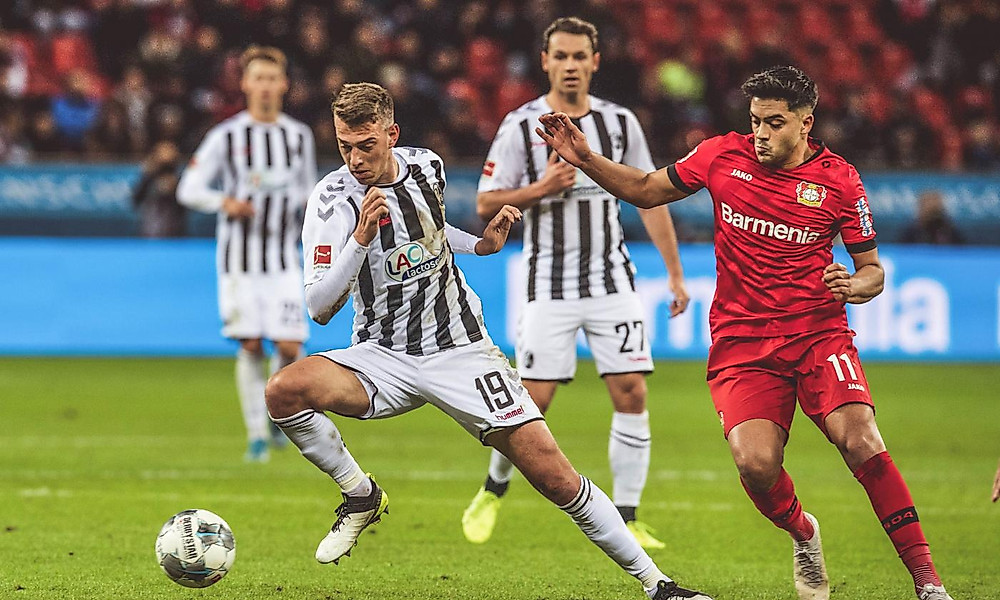 | Bayer Leverkusen: Hradecky - Weiser (26. L. Bender), Tah, S. Bender, Wendell - Aranguiz, Demirbay - Bellarabi, Amiri (89. Paulinho), Diaby - Volland (C) (74. Alario) Ersatzbank: Özcan (Tor), Dragovic, Retsos, Stanilewicz Trainer: Peter Bosz SC Freiburg: Flekken - Lienhart, Koch, Heintz - Schmid, Haberer, Höfler, Günter (C) - Borrello (58. Sallai), Petersen (90.+3 Schlotterbeck), Höler (90.+2 Frantz)Ersatzbank: Thiede (Tor), Gulde, Ravet, Gondorf, Kwon, Jeong Trainer: Christian Streich | |
