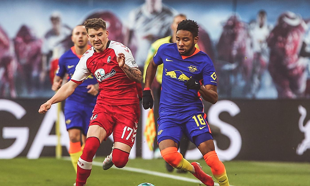SC-Keeper Florian Müller parierte einen Ball des Leipzigers Christopher Nkunku (2.), bei den Abschlüssen von Willi Orban (15.) und Emil Forsberg (18.) rettete jeweils der Pfosten den Sport-Club, der sich anders als noch gegen Bayer Leverkusen in der Vorwoche mit einer Fünferkette in der Abwehr präsentierte und personell zweifach wechselte.