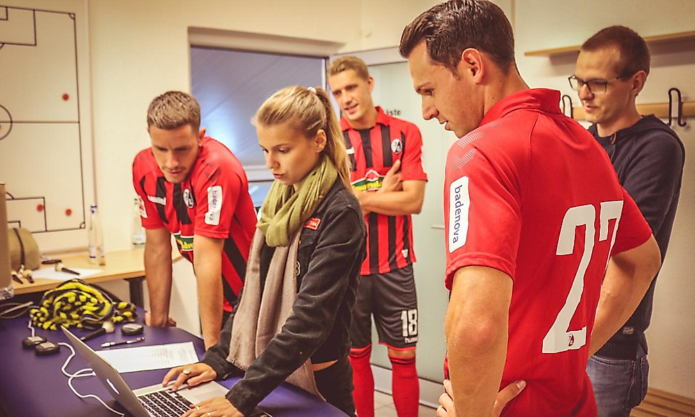 Die Spieler des Sport-Clubs legten sich am Dienstag beim Fotoshooting für den neuen Satz Autogrammkarten mächtig ins Zeug. Mit viel Spaß bei der Sache und einer gehörigen Portion Körpereinsatz gaben die Profis bei den verschiedenen Posen eine gute Figur ab. Auch Trainer- und Funktionsteam sowie SC-Präsident Fritz Keller ließen sich von Fotograf Florian Bilger und seinem Team bereitwillig knipsen.