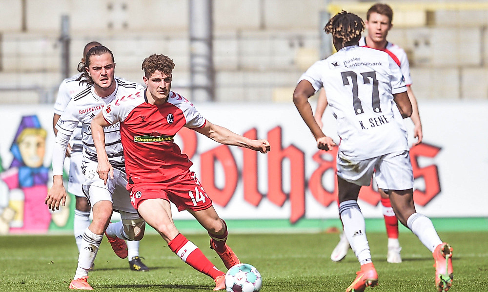 Zwar kam der FC Basel über den schnellen Aldo Kalulu zu einer weiteren Konterchance, bei der Keven Schlotterbeck noch zur Ecke klärte. Insgesamt bestimmte der Sport-Club aber weiter das Geschehen und hätte durch Schmid (19.), der an Torwart Felix Gebhardt scheiterte und bei einem Kopfball von Til (42.) schon vor der Pause erhöhen können.