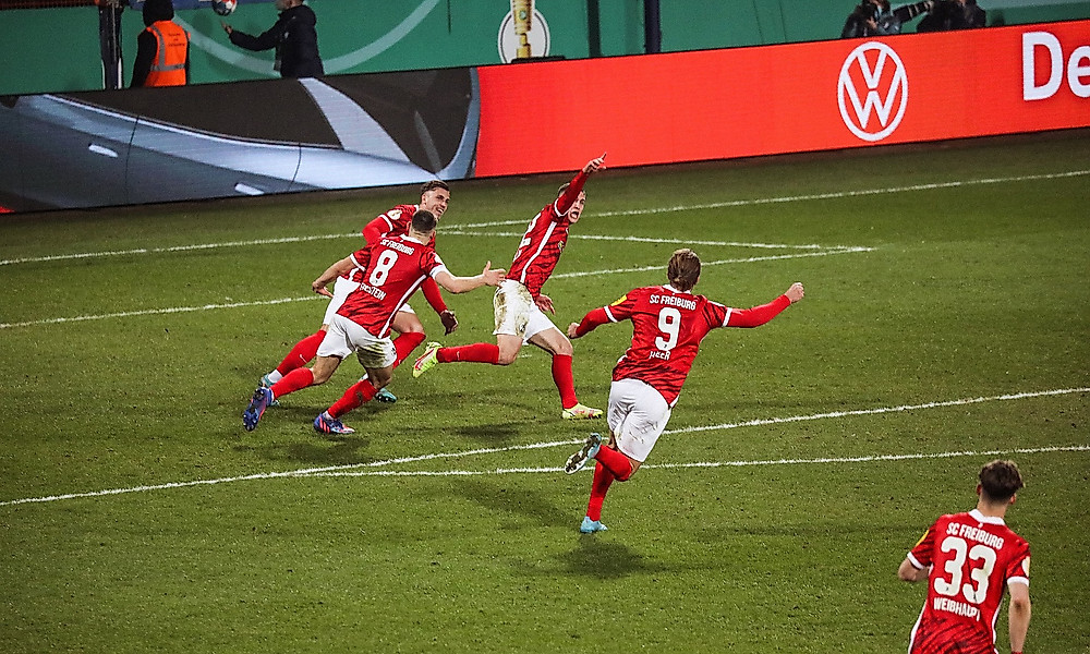 In Bochum war das anders. Ich stehe auf dem Rasen des Ruhrstadions, die SC-Profis feiern gerade vor dem Gästeblock den Einzug Halbfinale. Ich schwitze, spüre meinen Herzschlag. Und ich weiß, dass mir die vergangenen fünf Minuten noch lange in Erinnerung bleiben.