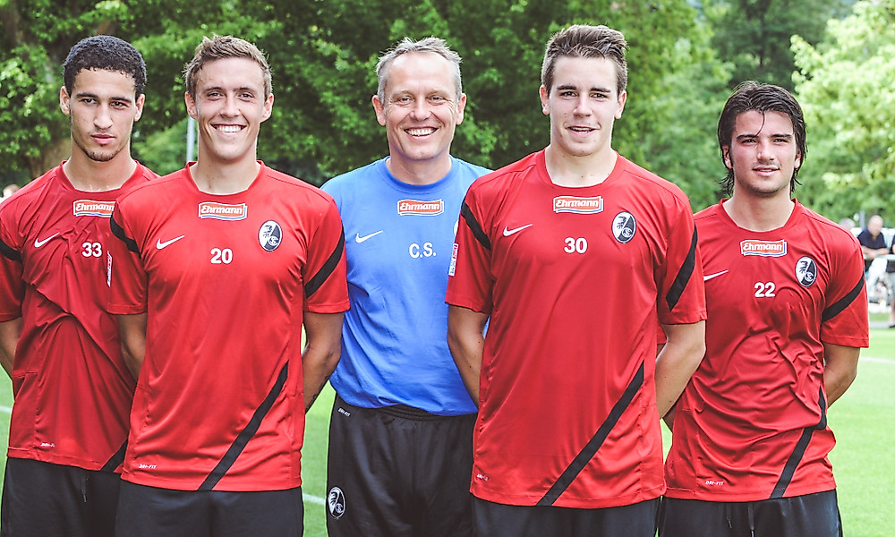 Das Bild muss beim Trainingsauftakt zur Saison 2012/13 entstanden sein, als wir Günni in den Profikader hochgezogen haben. Mental stark, voller Hingabe und immer positiv in seiner Herangehensweise, so kannte ich ihn da schon aus seiner Zeit in der Freiburger Fußballschule. Zweimal hatte er mit der U19 den DFB-Pokal gewonnen. Erst mit mir und das Jahr darauf als Mannschaftskapitän mit Martin Schweizer als Trainer. Dabei war er in der B-Jugend nicht mal Stammspieler. Aber er ist einfach immer klar geblieben und hat sich reingekämpft.